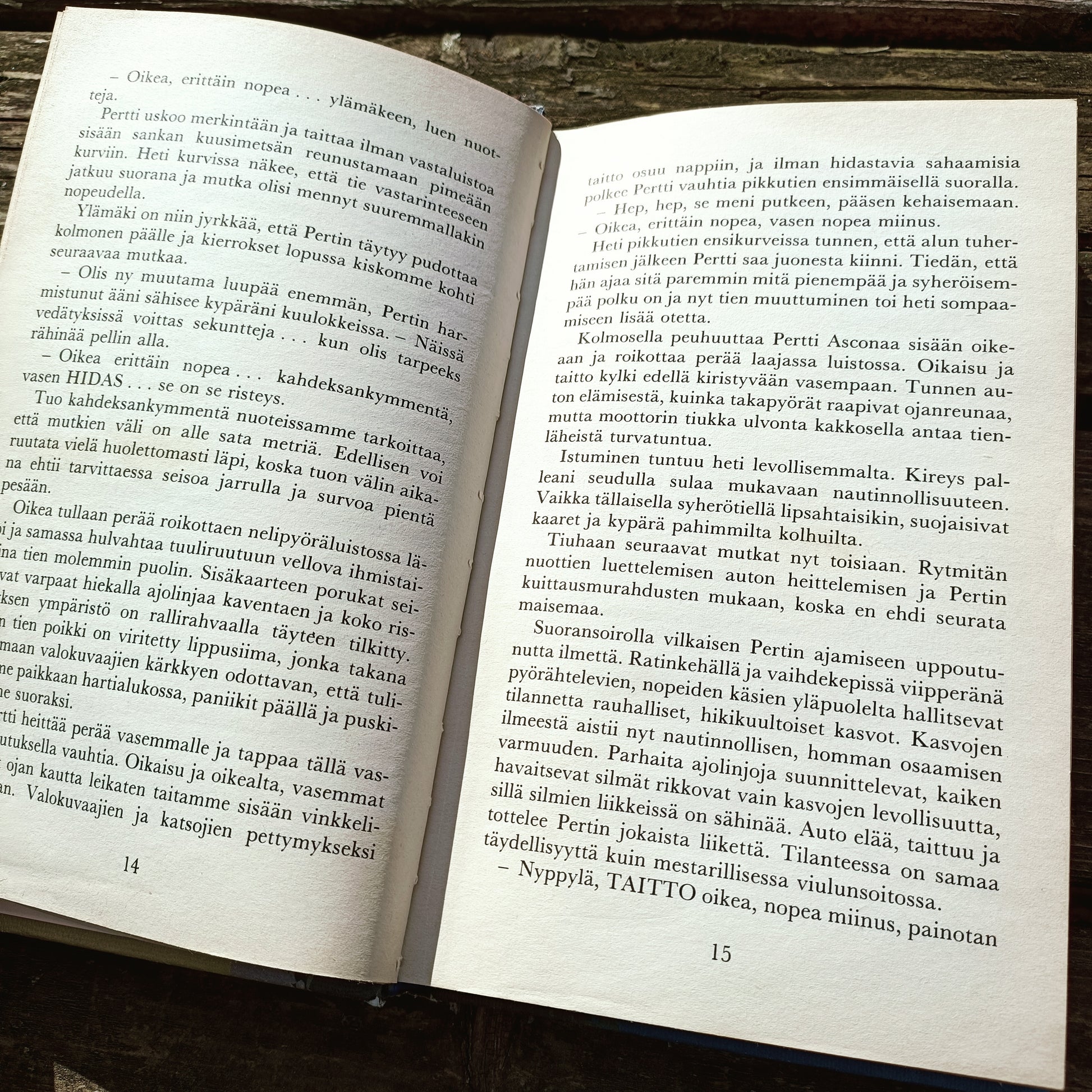 Simo Pyykkösen teos koskettelee asiantuntevasti ralliautoilun maailmaa, kilpailujen jännitystä, mutta antaa tuntuman myös autourheilun toisesta puolesta, jonne sisältyy runsaasti rahaa, keinottelua, rakkautta, vilppiä ja mustasukkaisuutta…