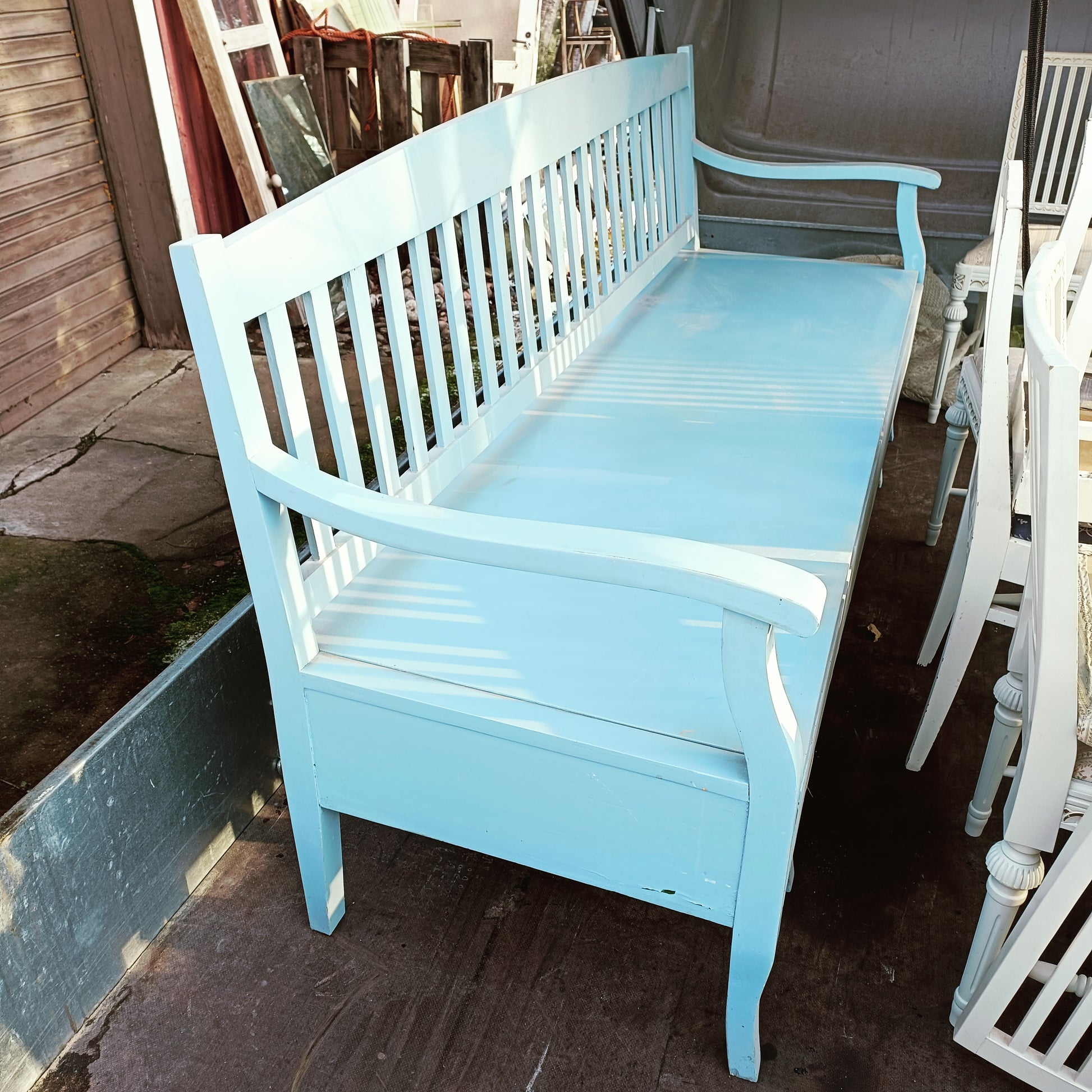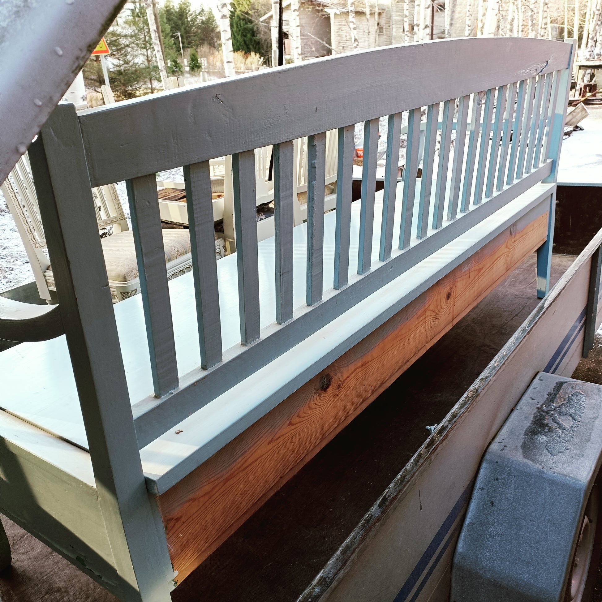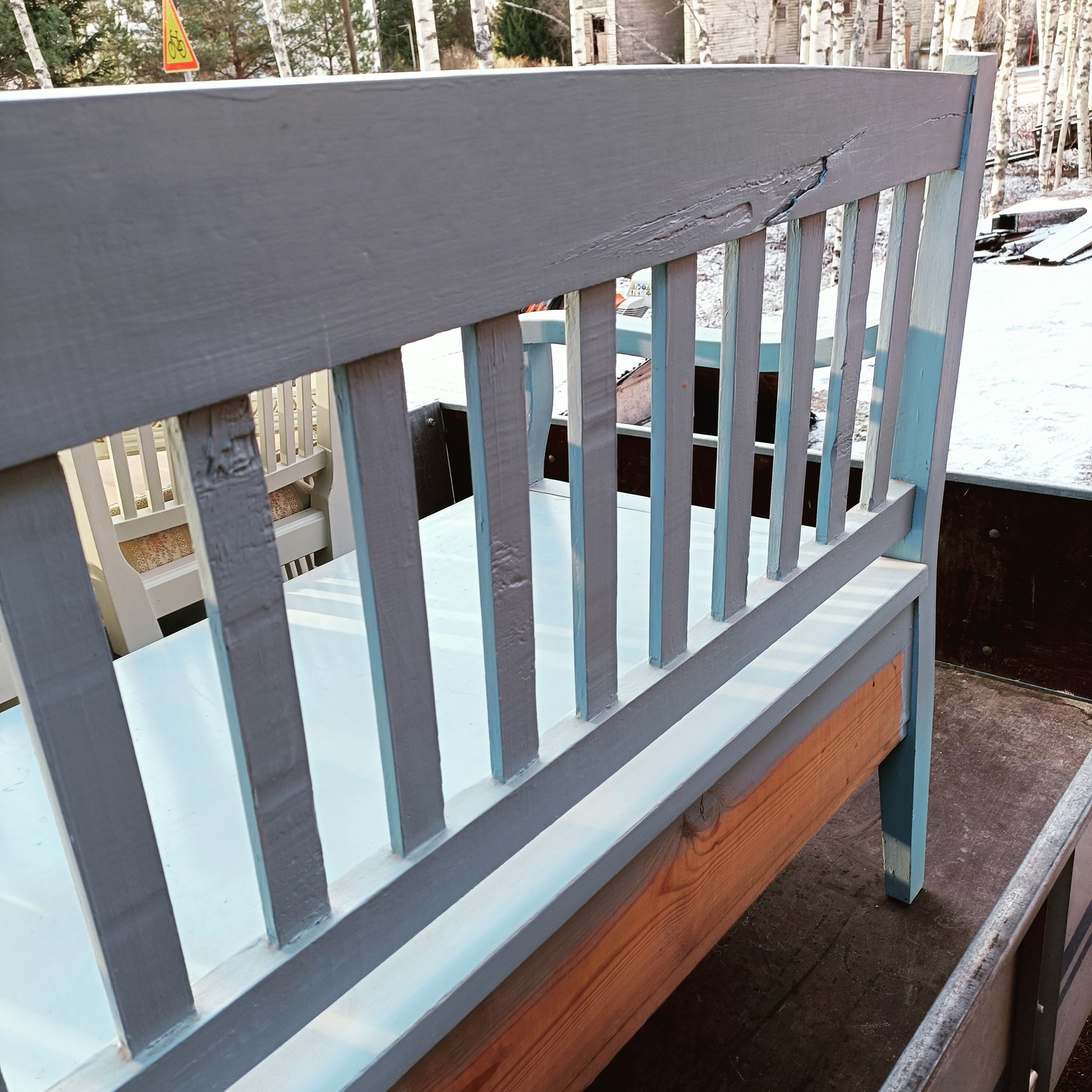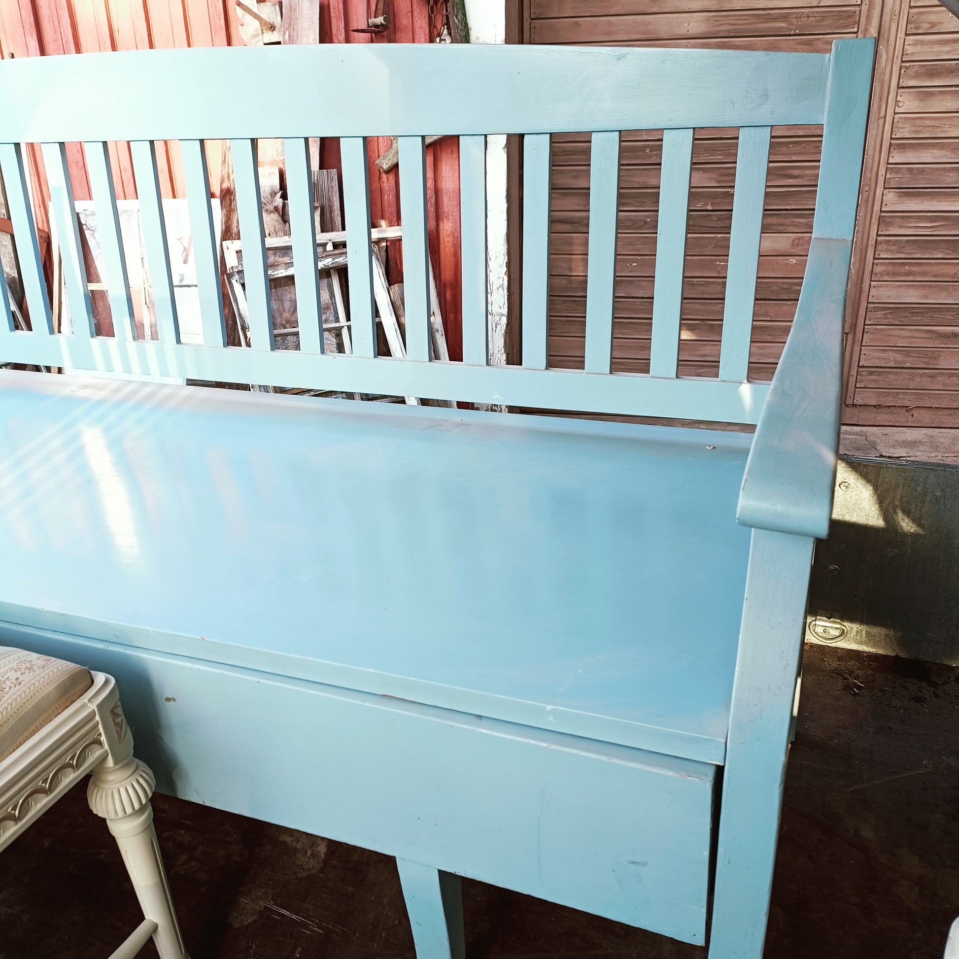 Sininen puusohva